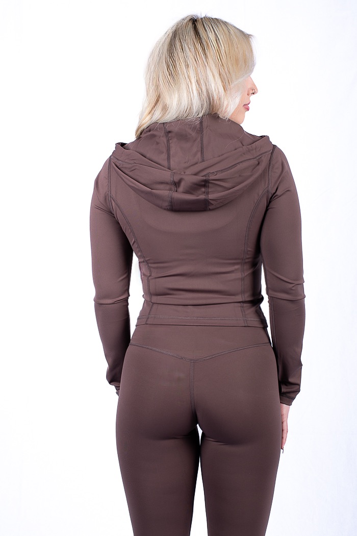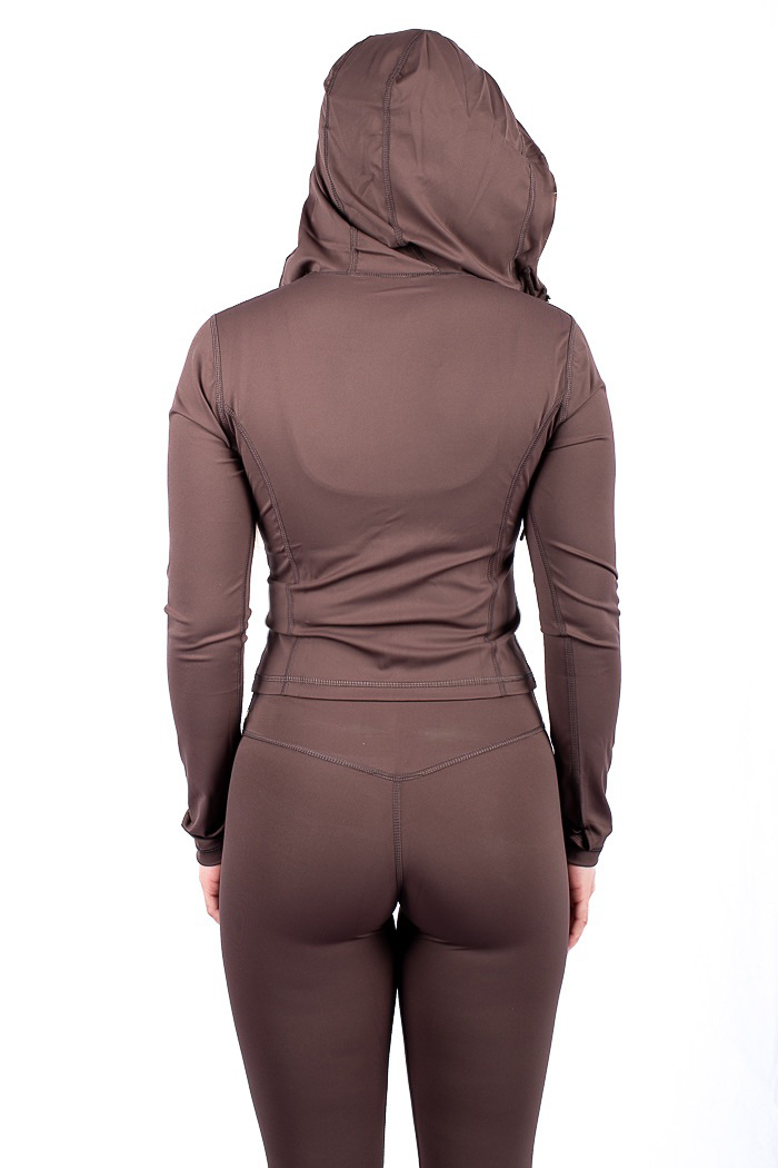 The functional yet sleek design provides comfortable coverage without bulk, while moisture-wicking technology helps regulate body temperature and keep you feeling fresh throughout the day. Whether layered over a sports bra or paired with your favorite leggings or joggers, this jacket transitions effortlessly from active moments to casual outings.